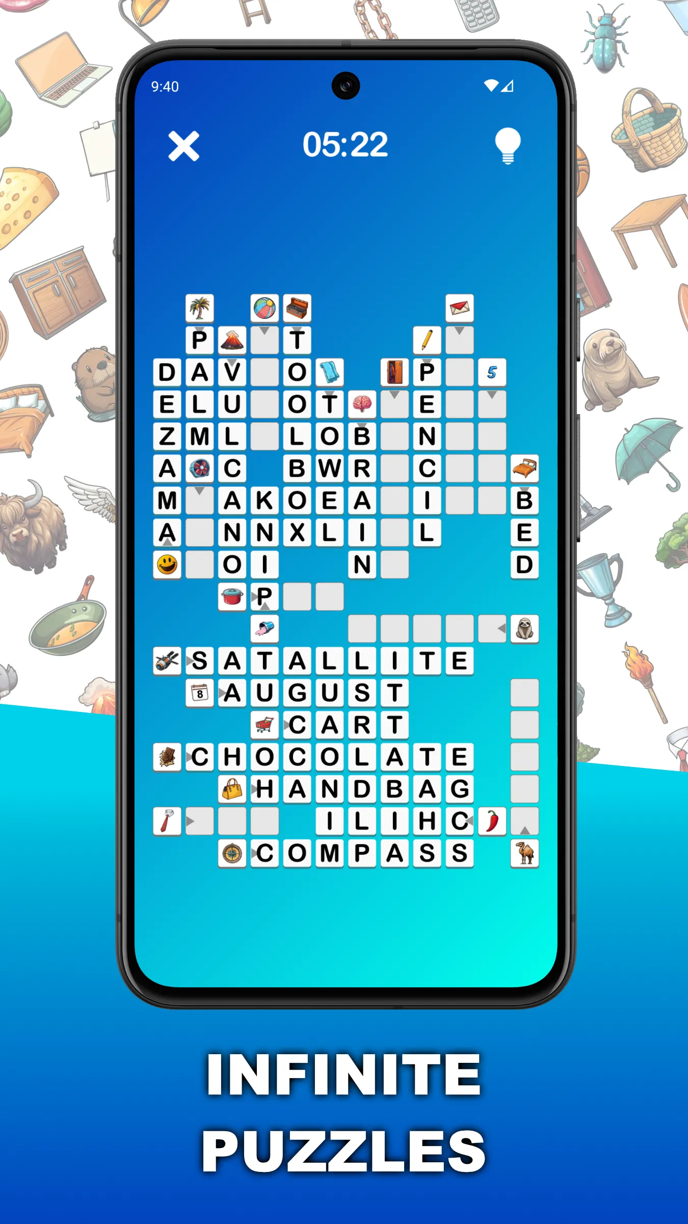 Dive into the world of crosswords with Word Detective! This captivating game challenges you to fill in the correct words for the displayed icons. Perfect for relaxing moments on your commute or while waiting for the next bus or tram.